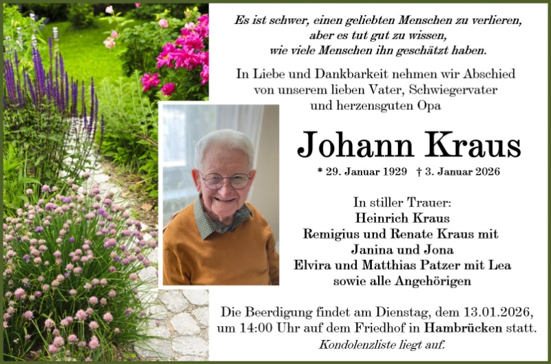 in dieser Zeit des Schmerzes wünschen wir Ihnen Kraft, den Verlust im Kreise Ihrer Liebsten zu verarbeiten. Als Zeichen unserer Anteilnahme und des Gedenkens entzünden wir dieses erste Licht. Möge diese Gedenkseite Ihnen helfen, Erinnerungen zu teilen und so das Andenken gemeinsam wachzuhalten.