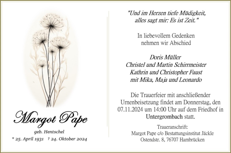 wir wünschen Ihnen für die kommende Zeit viel Kraft und dass es Ihnen gelingt, dankbar auf die positiven Erinnerungen zurückzublicken. Diese Gedenkseite möge Ihnen dabei helfen, Ihre Trauer zu teilen und das Andenken gemeinsam wachzuhalten.